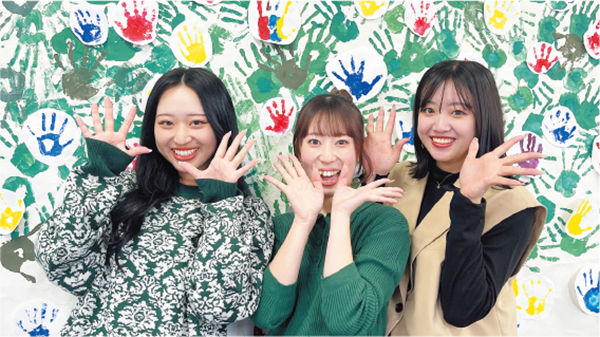 これからの目標を教えてください 常に笑顔を忘れず、明るく子どもたちとかかわりながら、トラブルなどにも臨機応変に対応できる確かな力を持った保育者になりたいです。温かい笑顔や一緒に遊んでくれた先生の姿が子どものころの記憶として残っているので、私も同じように大勢の子どもたちに楽しい思い出をたくさん残せるようにがんばります!