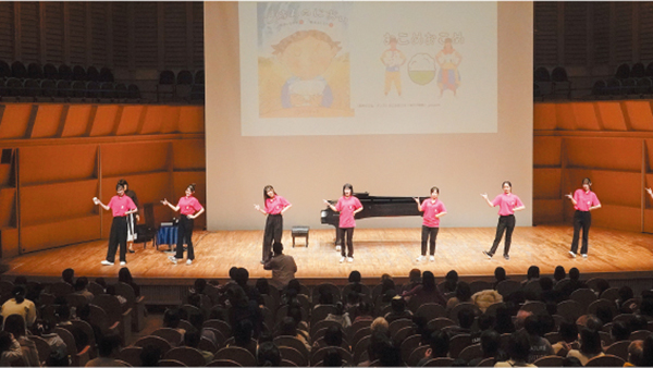 ハーモニーホールふくいで開催された絵本コンサートに参加。絵本に登場する音色を探すスタンプラリーや楽器体験、手づくり楽器コーナーなどを企画・運営しました。さらに、ステージでダンスも披露。イベントを盛り上げました!