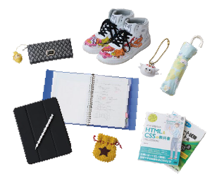 持ち物紹介 アルバイトで貯めたお金で購入したiPadは、デザイン・創作活動のパートナーです!自分でイラストを描いたリメイクスニーカーや卒業研究でつくったキーホルダーなど、自作のお気に入りアイテムも愛用しています。