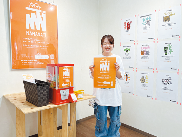 納村さんの卒業研究「NANANATI」は「物品取引におけるコミュニケーション」と「金銭を得ること以外の価値」について調査・検証するというもの。制作したオリジナルキャラクターグッズのガチャガチャによる非対面販売、イベントでの対面販売・配布、さらに人気投票を実施。その結果をもとに検証を行いました。